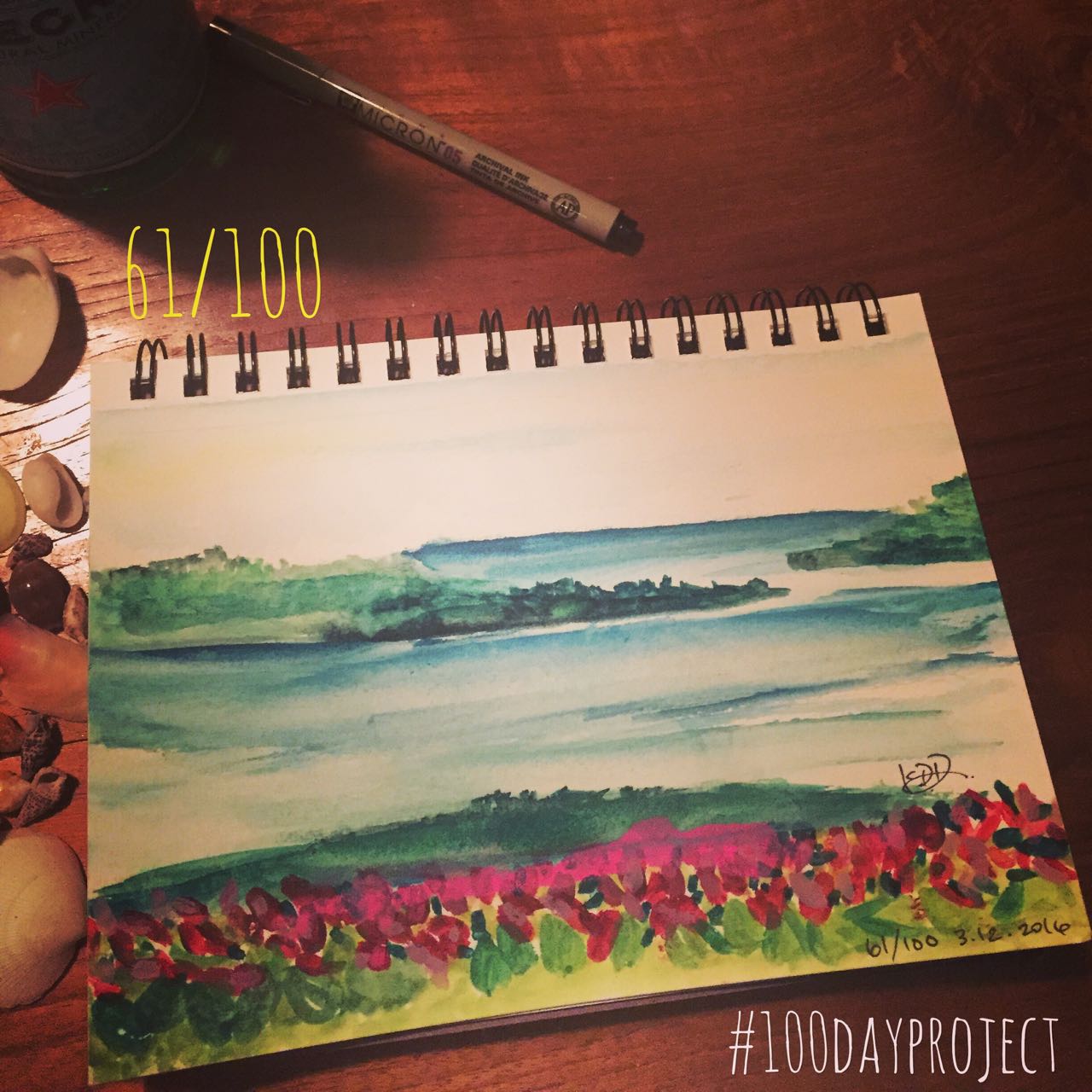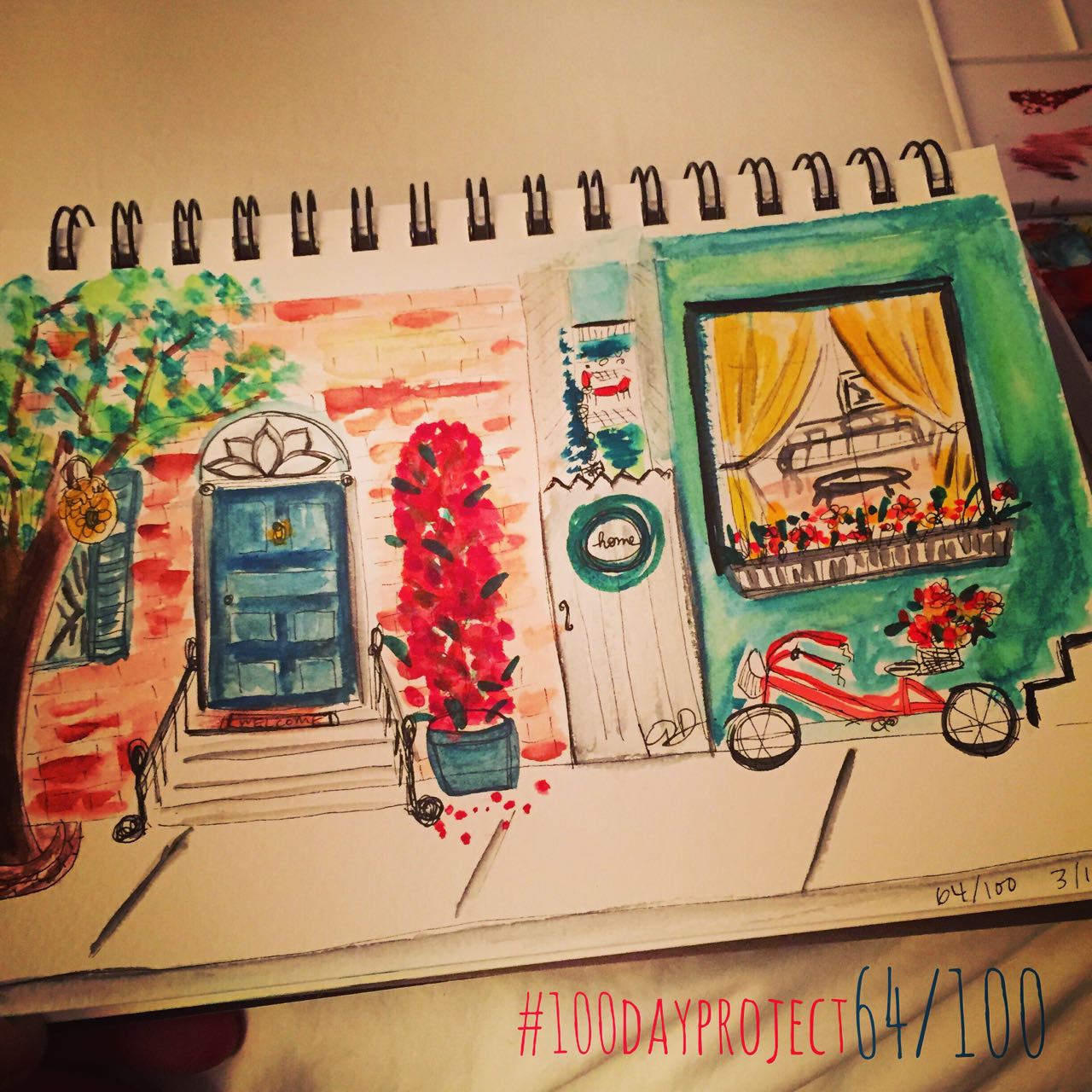 With this handy-dandy set up…my once stationery art set up became not only portable but super easy to clean up and provided a whole new medium for me to have adventures in :). So take a close look… after around #40, almost the whole second half of my project is done in nothing but luscious watercolors. And it opened up a world where some days I’d paint in the kitchen, some nights on the couch (!) and some of my favorites were done when I traveled to Turks and Caicos, California and the coffee shop down the street from me.