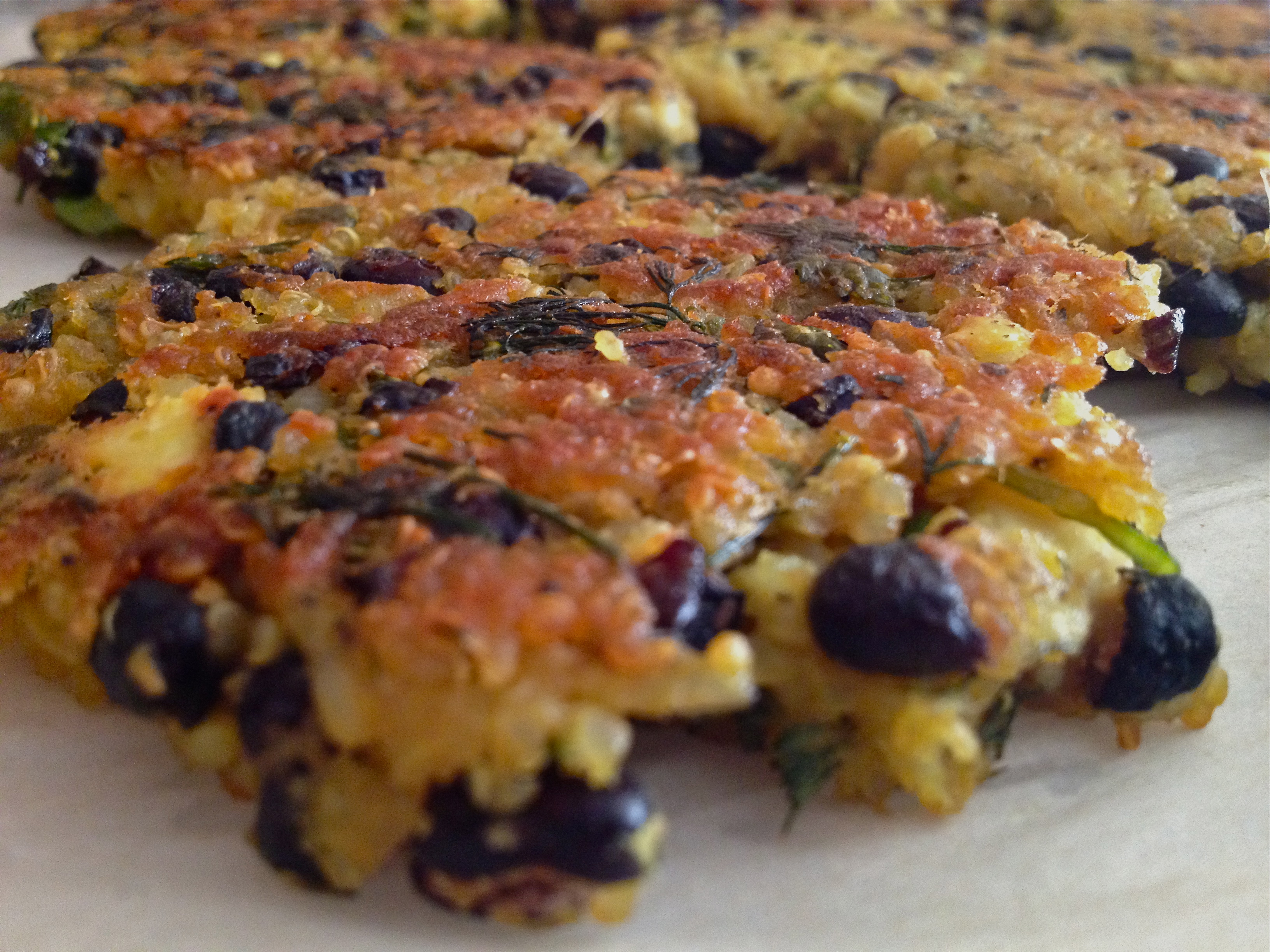 - Quinoa and Black Bean Cakes – These little patties travel nicely and make for a great lunch alternative on the road. I make them the night before, while making the cookies listed below as well. Both take about an hour together, which is so worth it the next day. The overall patty is tasty, but the quinoa is light and the black beans are filling, so they leave you quite satiated.