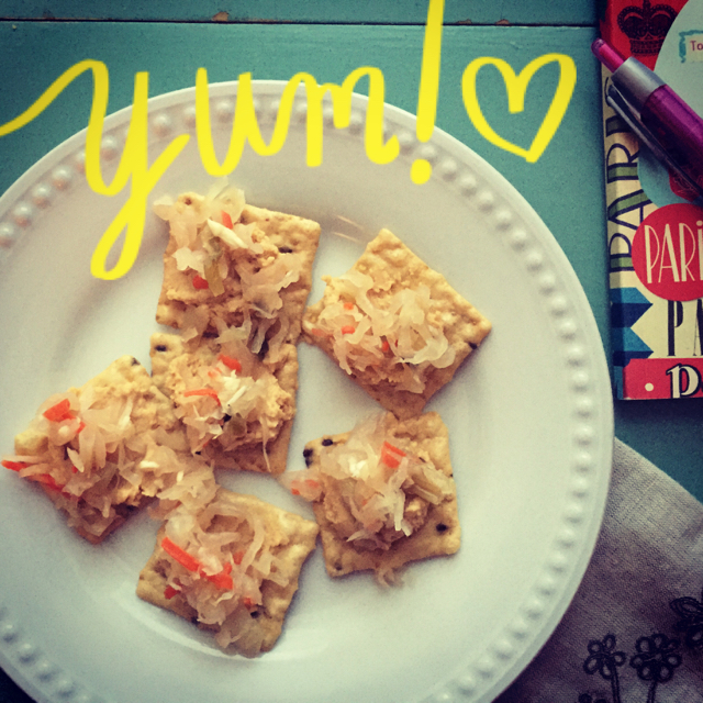 - Cucumber Slices & Baby Carrots – Like the rice crackers, these veggies are great on their own, but also perfect for dipping in the hummus. I especially am LOVING cucumber these days. It’s just so refreshing and light.