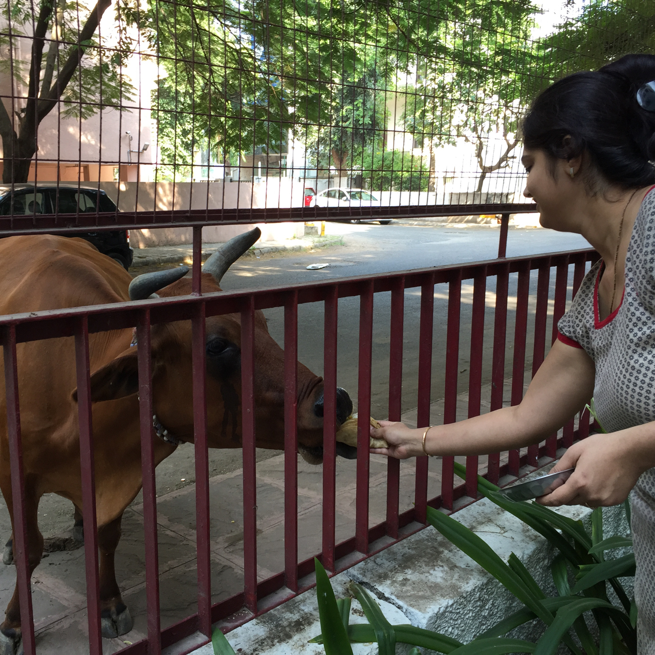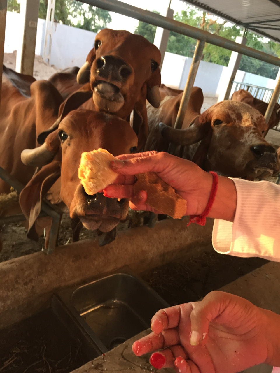 One of my favorite parts about going to India is spending time with the cows :). They are everywhere…smack dab in middle of traffic, grazing in open apartment courtyards, catching a nap on a street median and sticking heads through home fences to get a quick bite to eat :).